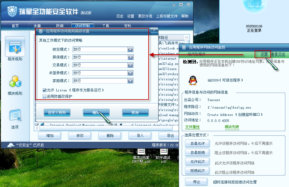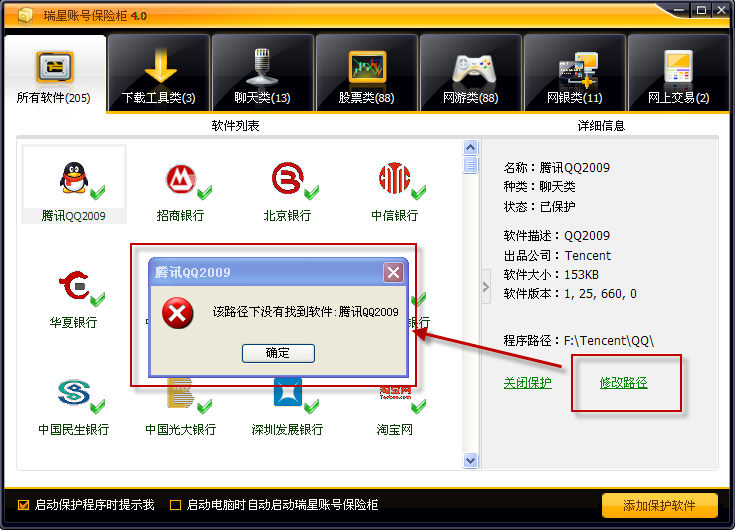 \Tencent\QQ\BIN\文件夹,明明文件夹下存在QQ.exe文件,但却提示失败。因该是瑞星故意如此设置的吧。