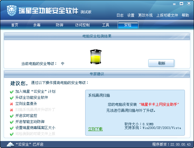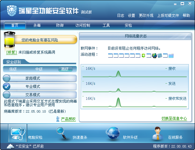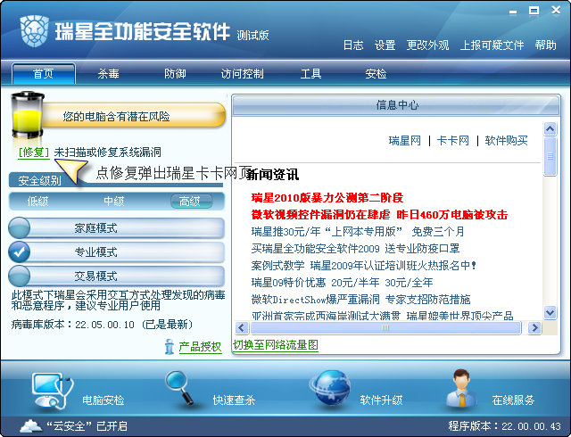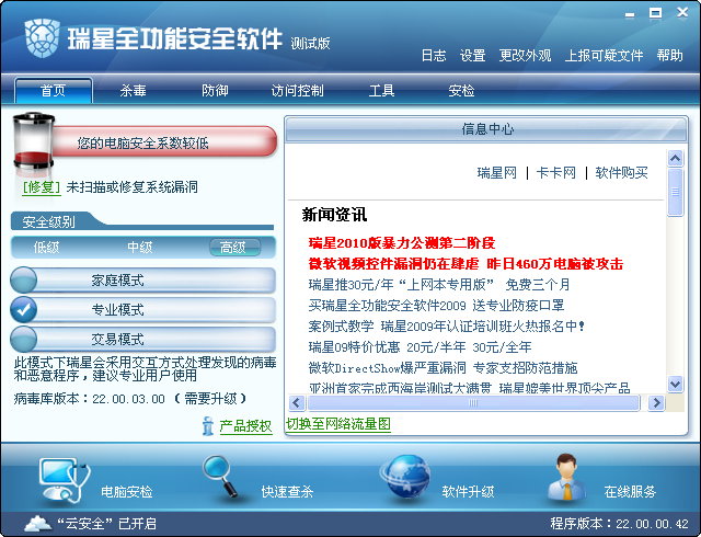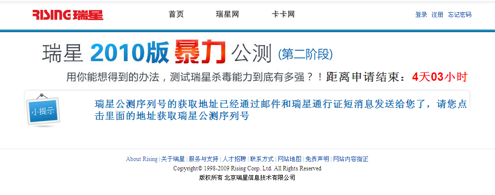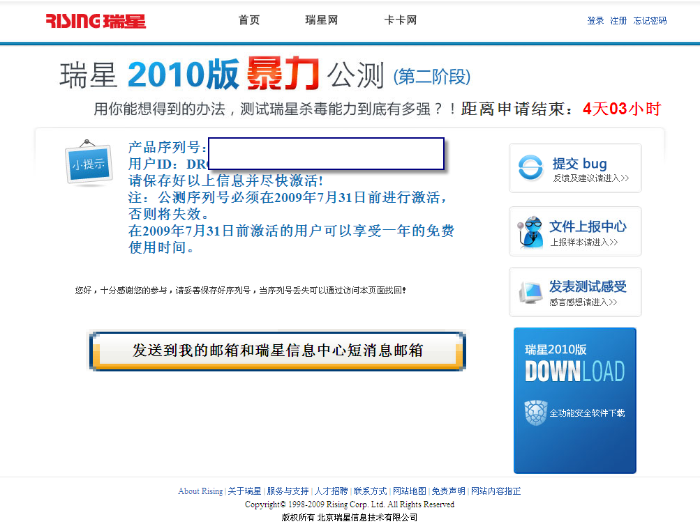 今天测试了一下在上网本上安装瑞星2010全功能版。