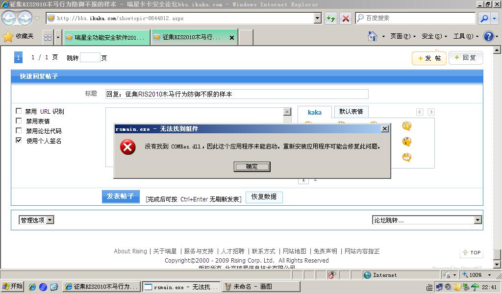 关闭文件监控,木马防御为高,运行包里的alg.exe,木马防御虽然报警,但是comres.dll依然被病毒修改掉了