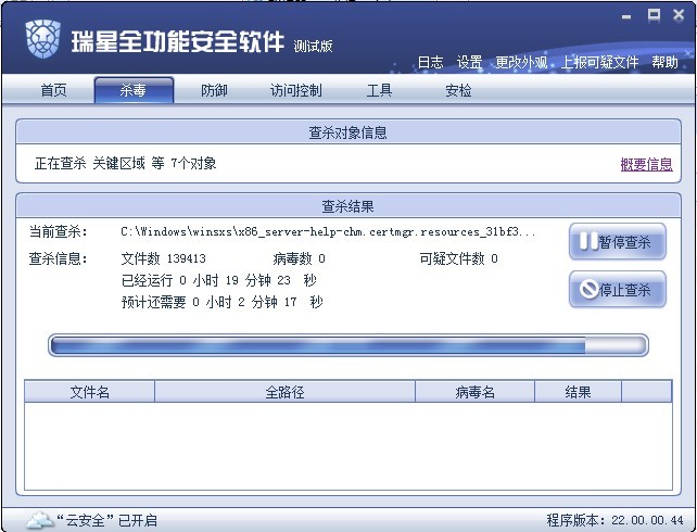 瑞星全功能安全软件在visit下杀毒好快下面是图