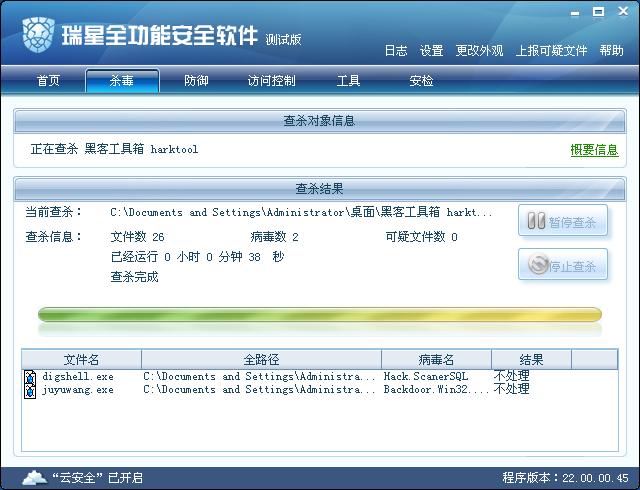 这是昨天我发的帖,今天又测试了下,还是对指定文件夹中的病毒样本只能查出却不处理,重复一下,能查出来,但是显示结果是“不处理”