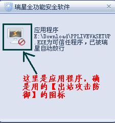 我运行pplive加速器  显示【应用程序被……,已被瑞星放行】的气泡通知