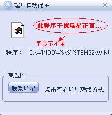 应该显示是“此程序干扰瑞星正常运行”,而现在显示的是此程序干扰瑞星正常,后面2个字不显示了