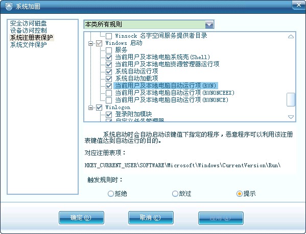 系统加固下自动放过签名程序的勾勾去和不去掉没有两样,PPS加速软件依然会修改注册表。