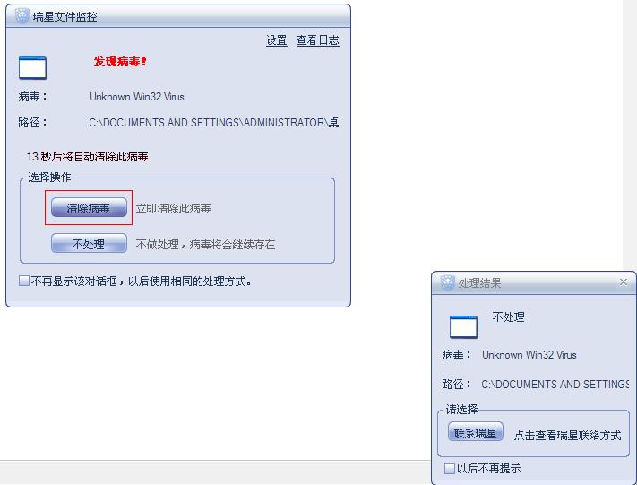 用户无情,瑞星有情.....选择清除但是提示不处理的问题。