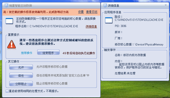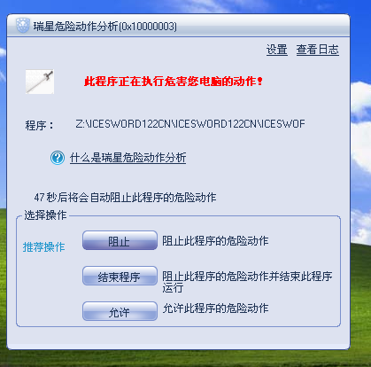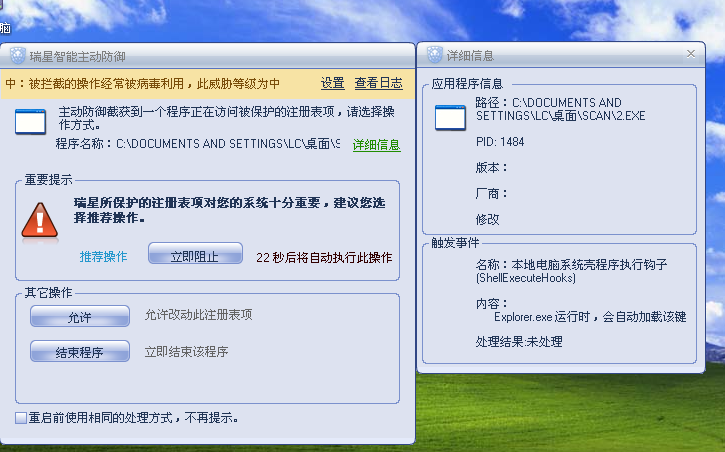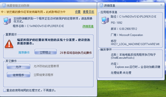 RIS2010在其一连串动作执行后,将其拦截,并将系统回滚到被病毒修改之前。