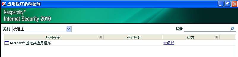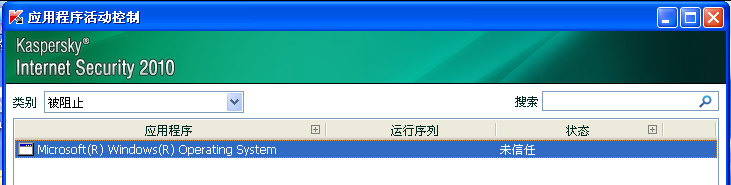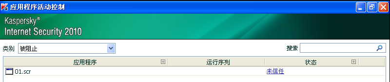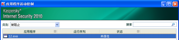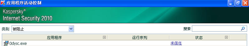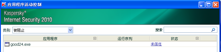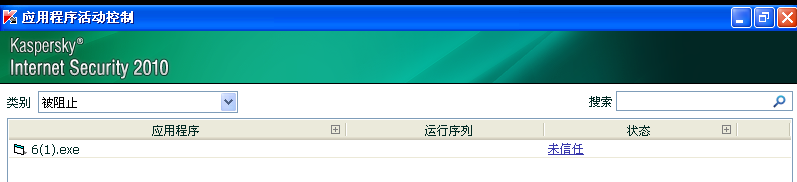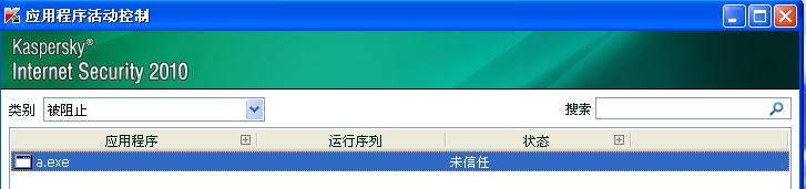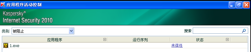 KIS2010的应用程序活动控制阻止其运行。关闭应用程序活动控制后,KIS2010未拦截该病毒。