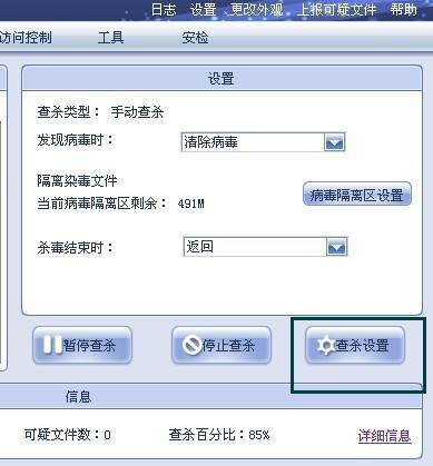 点击主界面 的【快速查杀】按钮 没有设置的地方 点击设置 也只显示的详细设置里的【手动查杀】设置