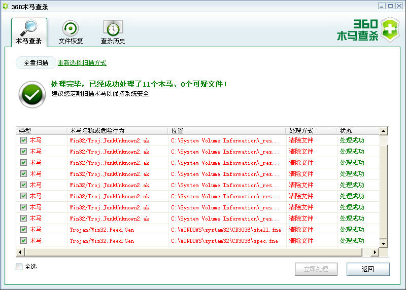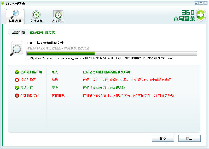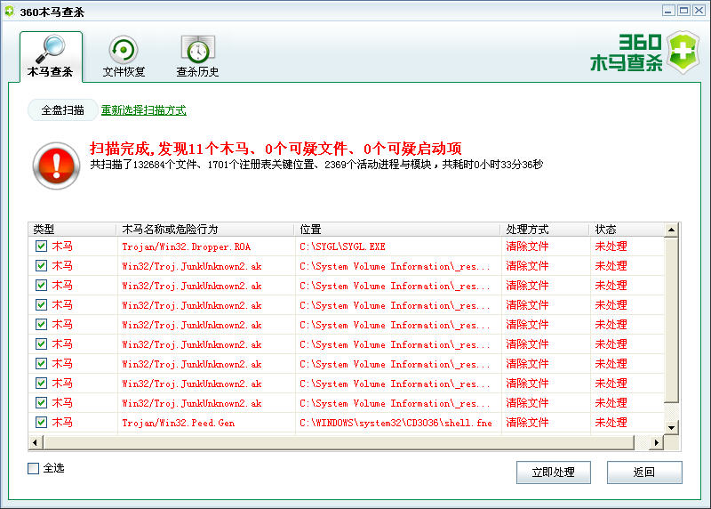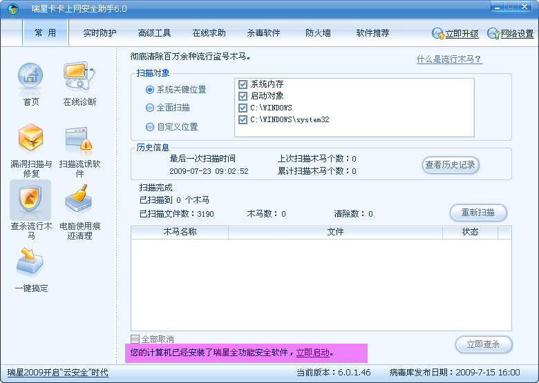好多木马呀。为啥瑞星没有动静呢?先不着急处理。先瑞星全功能版查一下。