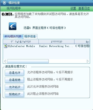 打开迅雷软件后一些程序需要访问网络,可结果发现一个问题:
