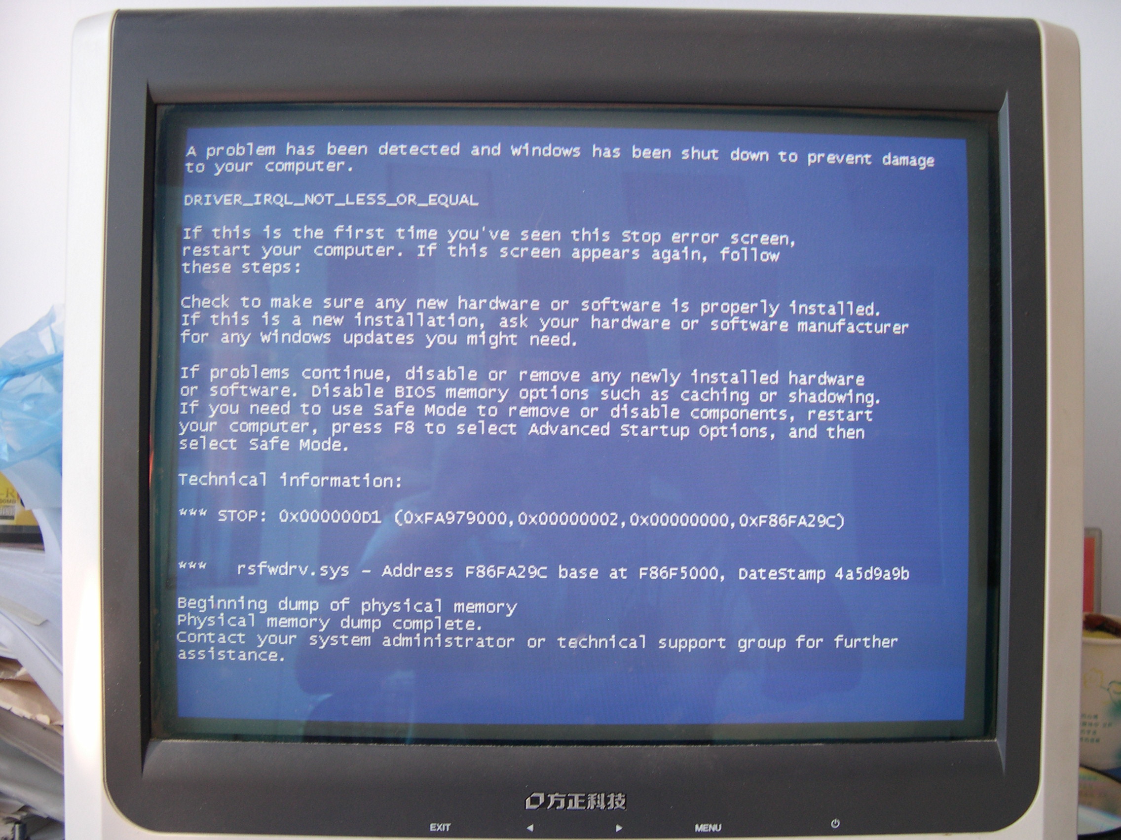 自7月21日安装瑞星2010以来机器在浏览网页或下载软件时出现蓝屏现象,机器原来没有这种现象(机器为方正品牌机)。
