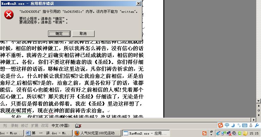 我之前用2009的没有出现过这种错误,我正在一边看文章一边杀毒的时候突然有这个错误提示,并且瑞星自动关闭,