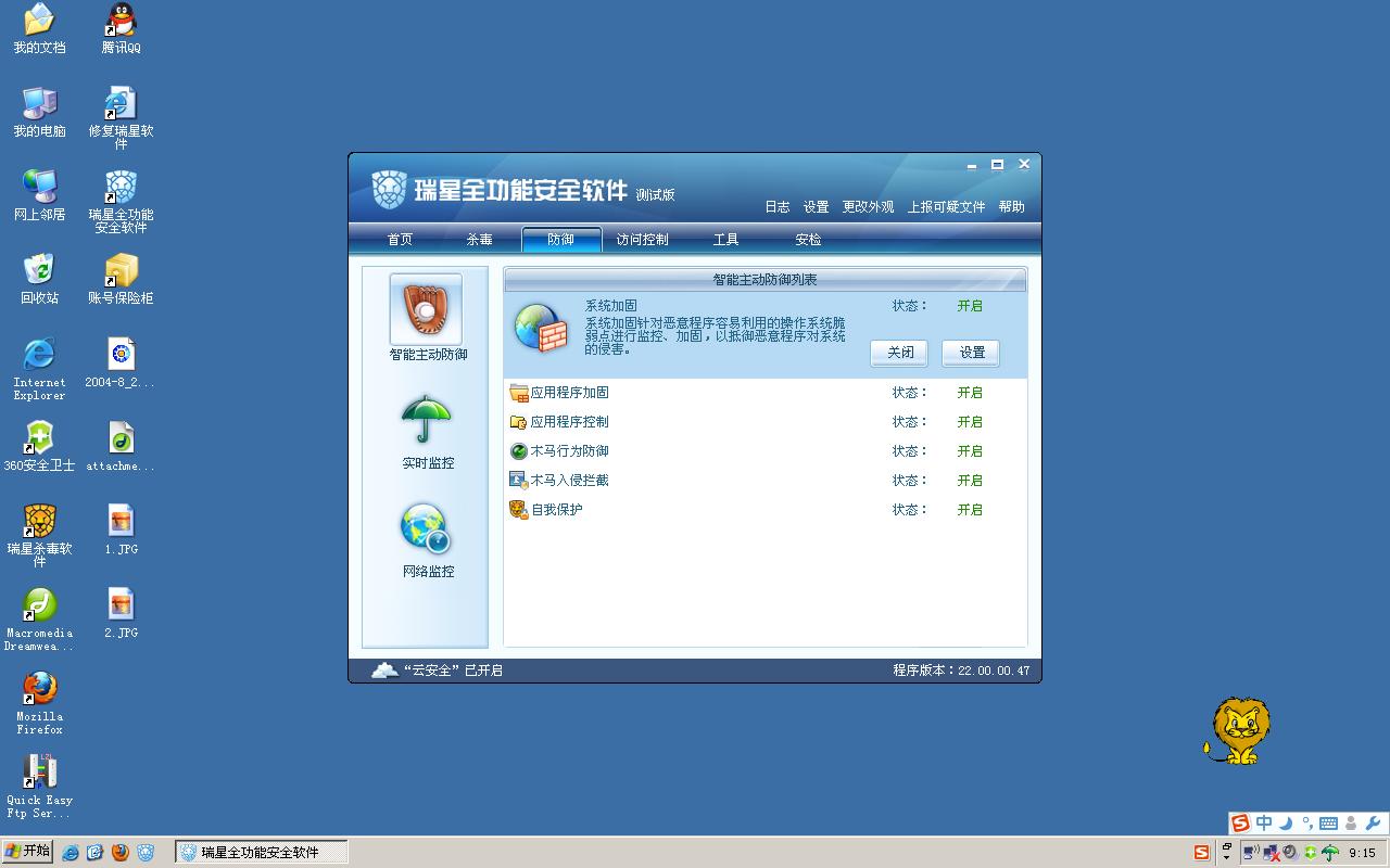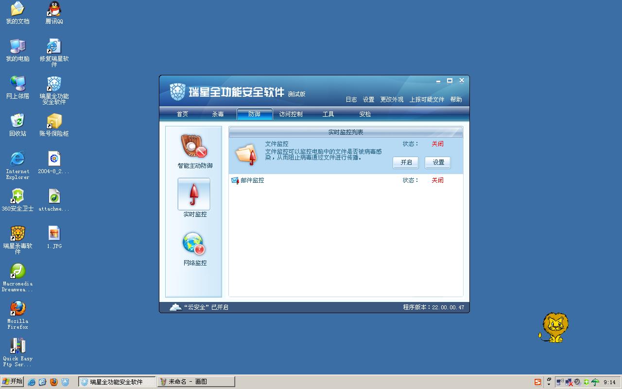 瑞星软件版本:程序版本22.00.00.47 病毒版本22.05.04.09