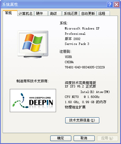 网上下载的深度精简版XP系统