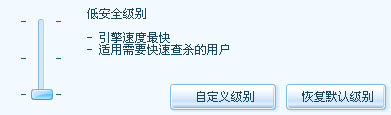 也可以通过这里直接设置,选到合适的位置然后确定,把所有有级别设定的地方都改为低设置。然后开始杀毒。