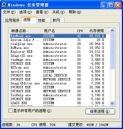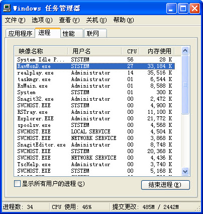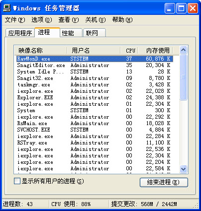 第二阶段测试的主题是瑞星全功能版在低配置电脑上的使用,所以本帖主要测试瑞星全功能版的三种安全级别对CPU的占用情况。