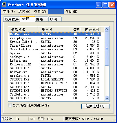 3.查杀过程中打开REAL看电影的CPU占用情况