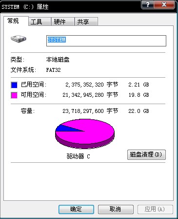 从上面的两个图中可以分别计算不c盘占用率,2010版c盘占用率为11.38091085%比2009版c盘占用率为11.29444951%大0.08646134,这里表明在c盘占有率中很明显2010版的要比2009版更占资源。