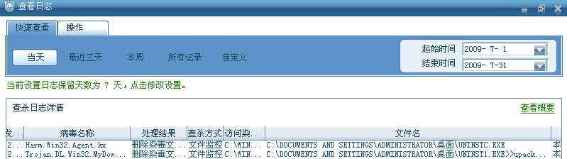 所以特意留下这两个病毒文件,是因为他们属于最初RIS2010执行开机杀毒时报告删除掉的4个病毒程序中的两个。