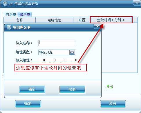 这是点增加时的菜单,只有名称和地址的设置,生效时间的设置是没有的,自动默认为永久。