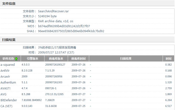 SearchAndRecover一款误删除软件,下载下来发现瑞星报毒!!!