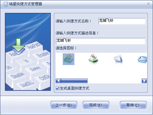 如图,无论选择任何图标,桌面生成的快捷方式图标都是统一的盾形图标