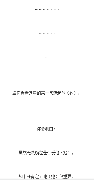当你看着其中的某一句想起他(她),你会明白:虽然无法确定是否爱他(她)却十分肯定:他(她)很重要