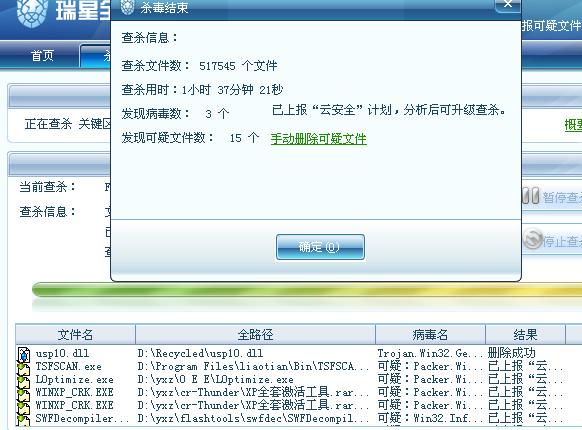 回复:RX2009/2010全盘杀毒后再使用360竟然还有23只木马。