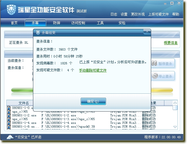 我刚想滚回去看看,一下子就自动返回到最上面了。。一定要等到整个查杀完成后或后面很长一段时间没有新查出病毒时我才能自由滚动查看~