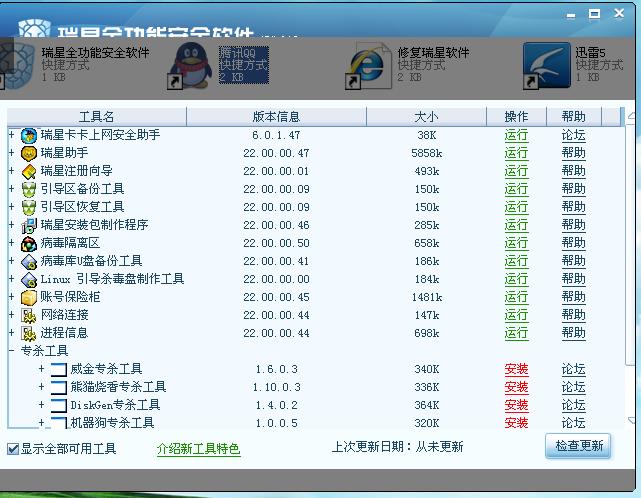 你们试试啊打开瑞星主程序点击工具然后瑞星就闪个不停无法关闭,类似于假死点击任务栏的那的右键关闭提示干扰瑞星正常工作。被拒绝了