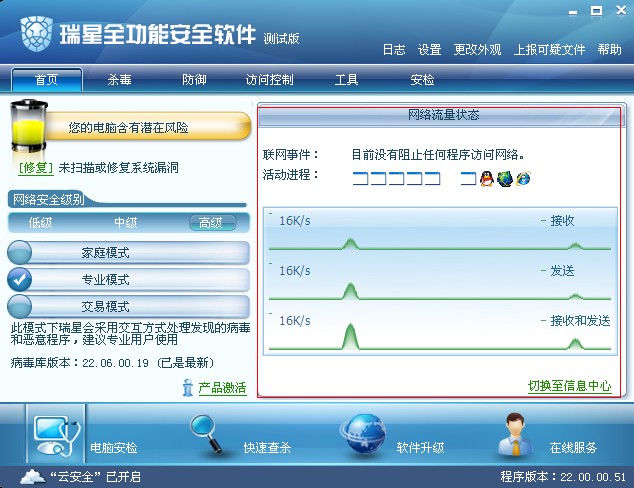 刚刚升级后,瑞星的信息中心怎么切换,重新打开软件,它就是不出现。