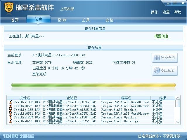 此次查杀中,瑞星上网本版耗时16分42秒