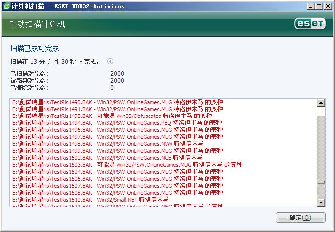 此次检测中,ESET NOD32检测耗时13.30秒