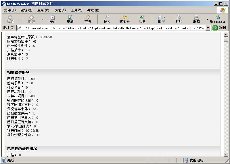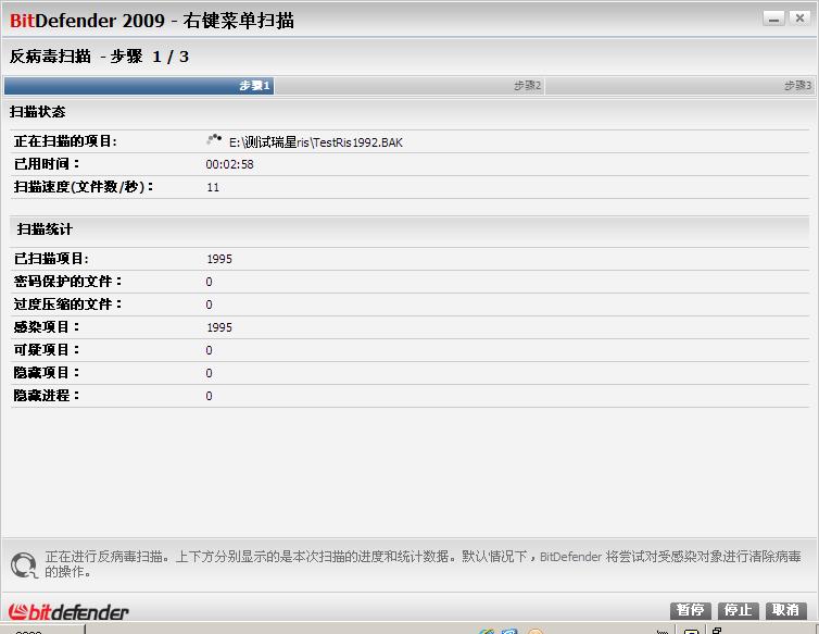 此次检测中,BitDefence2009检测耗时2分58秒