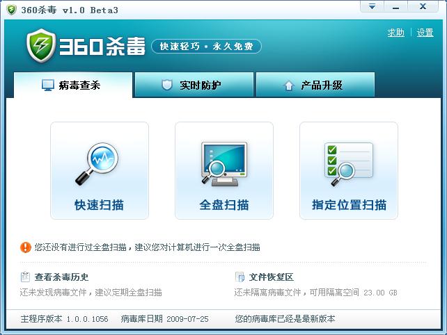 360杀毒是360推出的一款号称免费的杀毒软件,目前版本为1.0 beta3版。在此次评测中,360杀毒也取得了较好的成绩,但是,其对病毒的清除时间让人大跌眼镜,每删除一个病毒平均耗时1秒钟,不知何故。