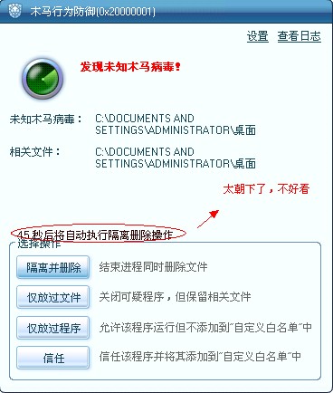 木马行为防御和文件监控提示框里的倒计时太下面了,已经和下面的字"选择操作"紧靠在一起了,不美观也不好看(如图)