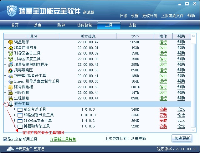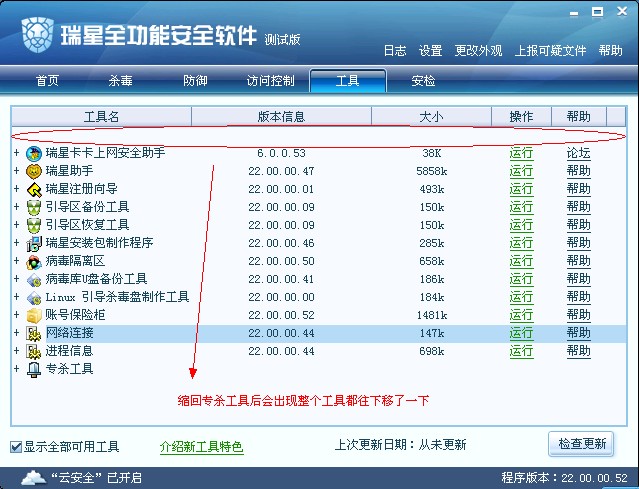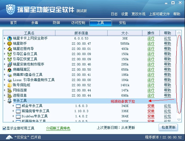 RIS工具,将专杀工具扩展,然后将滚动条往下拉,然后在将扩展的专杀工具收回,会发现整个工具往下移位了