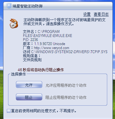默认情况下,瑞星未对Tcpip.sys进行保护。一旦使用路由器的用户安装了电驴,那么极有可能驱动文件被修改,导致网络无法使用。