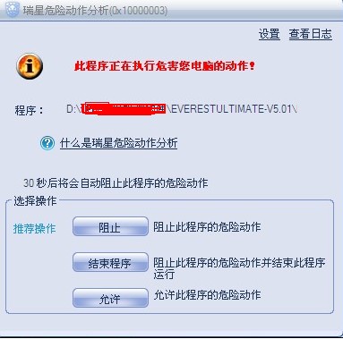 运行everest,瑞星报危险动作,如图(程序版本:22.00.00.52)