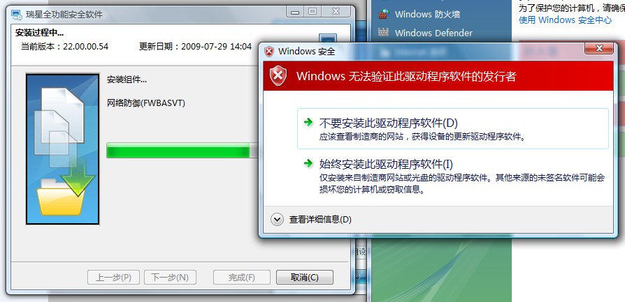点击“始终安装此驱动程序软件”后,进度条没有任何变化,过了一小会儿,再次弹出此对话框,再次点击“始终安装此驱动程序软件”后,顺利修复。