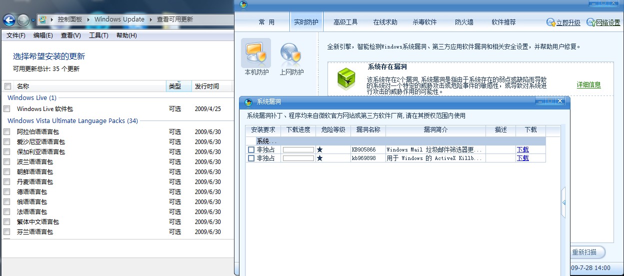 卡卡6.0.1.49及其近期的几个版本,对于Vista的漏洞判断都出现了bug,我用Windows Update检测没有的漏洞或者是已经修复的漏洞,卡卡却一直提示我未修复,并且就算用卡卡修复,漏洞依然存在。
