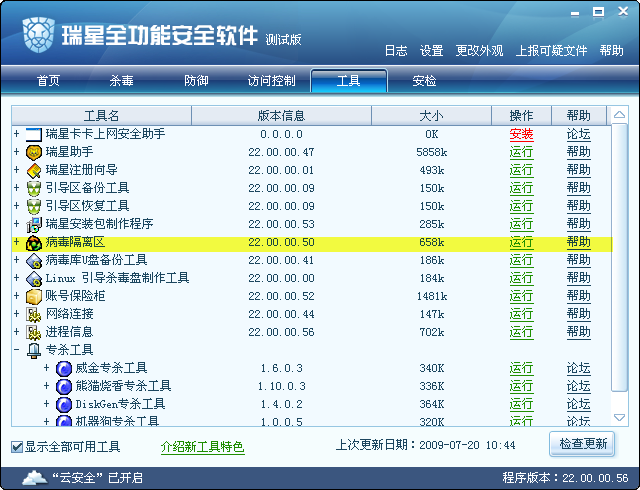 要查看隔离区文件还要到工具里面运行病毒隔离区查看工具。太不方便了。