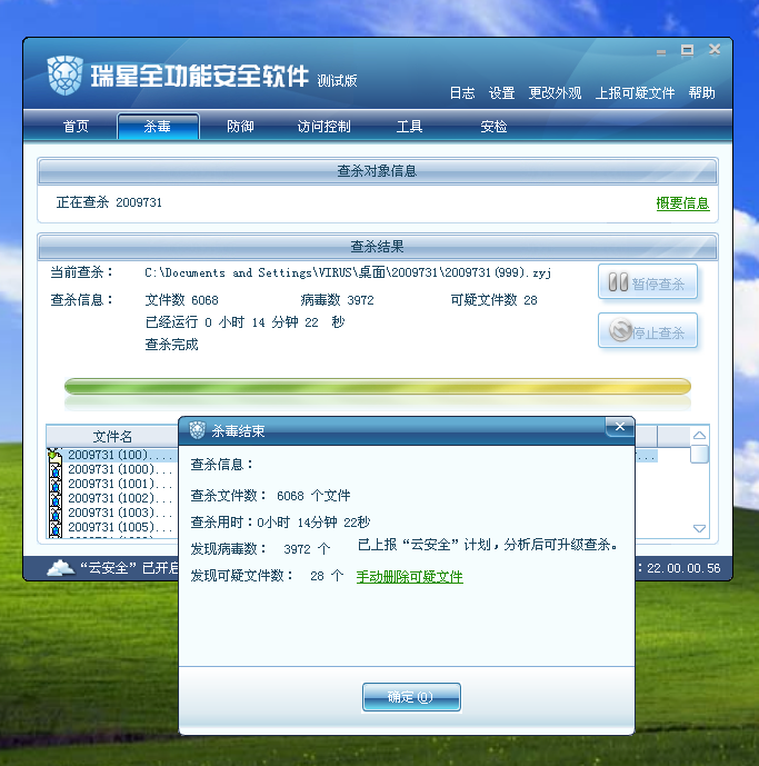 此次比较的是瑞星2010查杀能力以及对于未知病毒的防御能力