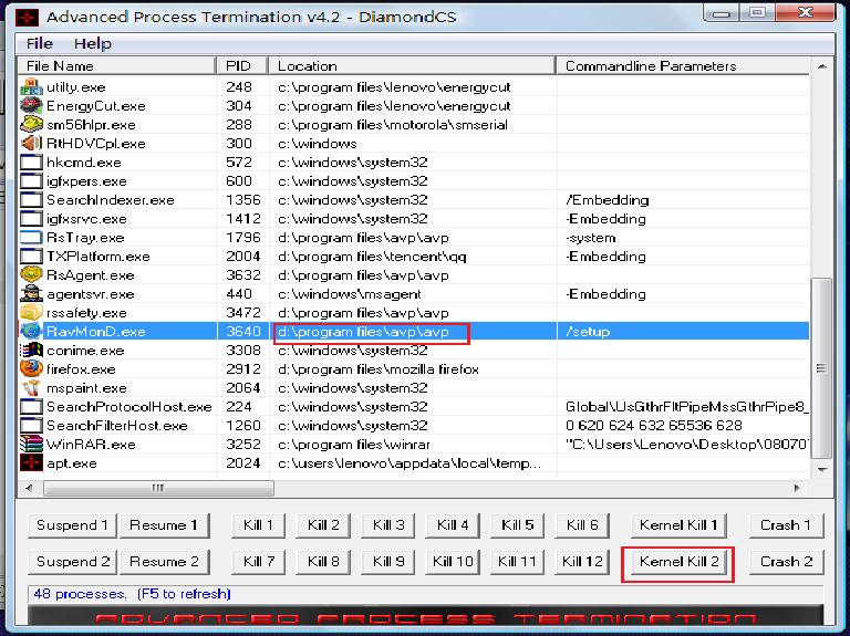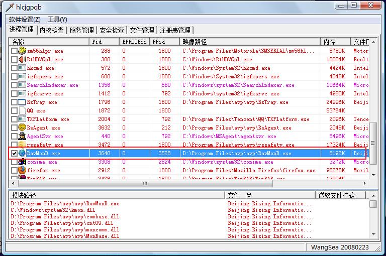 用wsyscheck V1.68.33中文版能轻易地结束瑞星的进程!!!