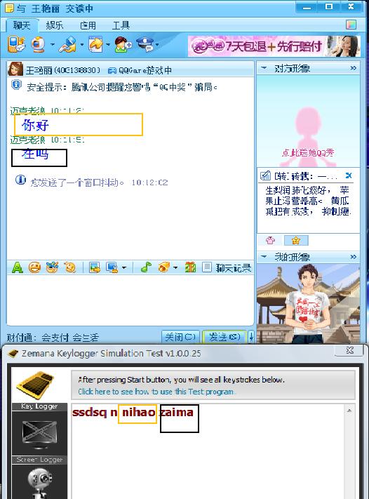 运行QQ登陆程序,记录程序无法获取QQ信息!!! 但其可以获取聊天记录,不太完美!!!不如卡巴直接挂钩相关函数来的 安全,毕竟让