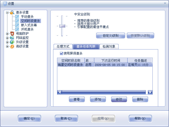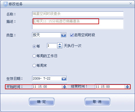 修改任务,名称和描述为灰色,不能更改,也就是下面的时间改了,也不会变,还有就是既然是空闲查杀,为什么描述中说每天11:45分查杀,感觉是定时查杀。