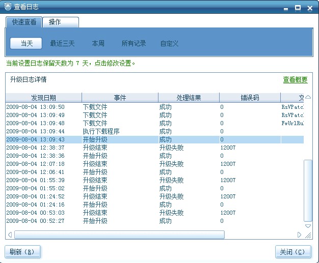 升级设置是“即使升级”打开日志看到升级出现了很多失败的(如下图所示),升级失败,错误代码 12007