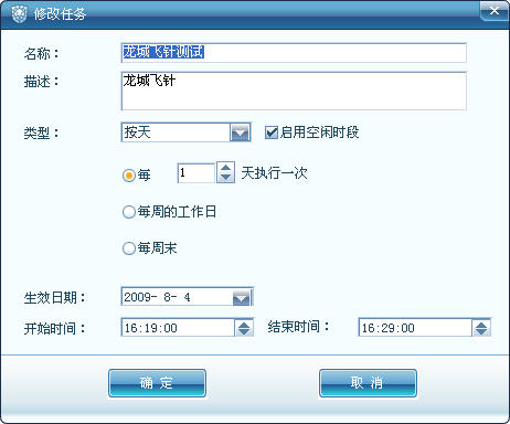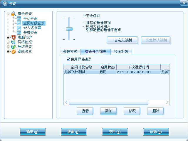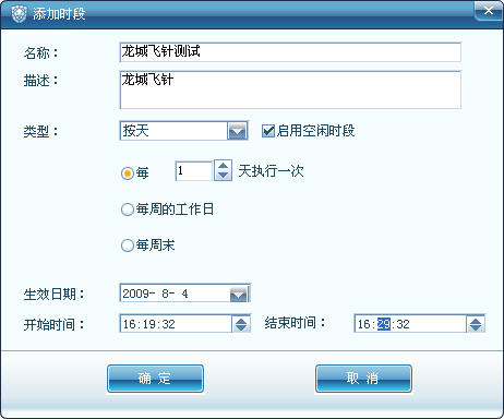 随意添加一个空闲查杀时段。开始时间和结束时间默认是当前的时间。