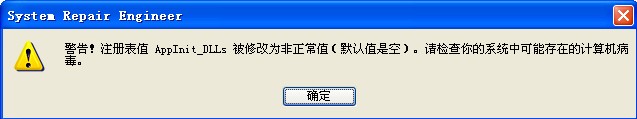 <AppInit_DLLs> 这项 sreng扫描默认是空的,如果不为空 就会出现你图中的提示,不过你这个是正常的,里面的kmon.dll是瑞星的文件,楼主不用担心!