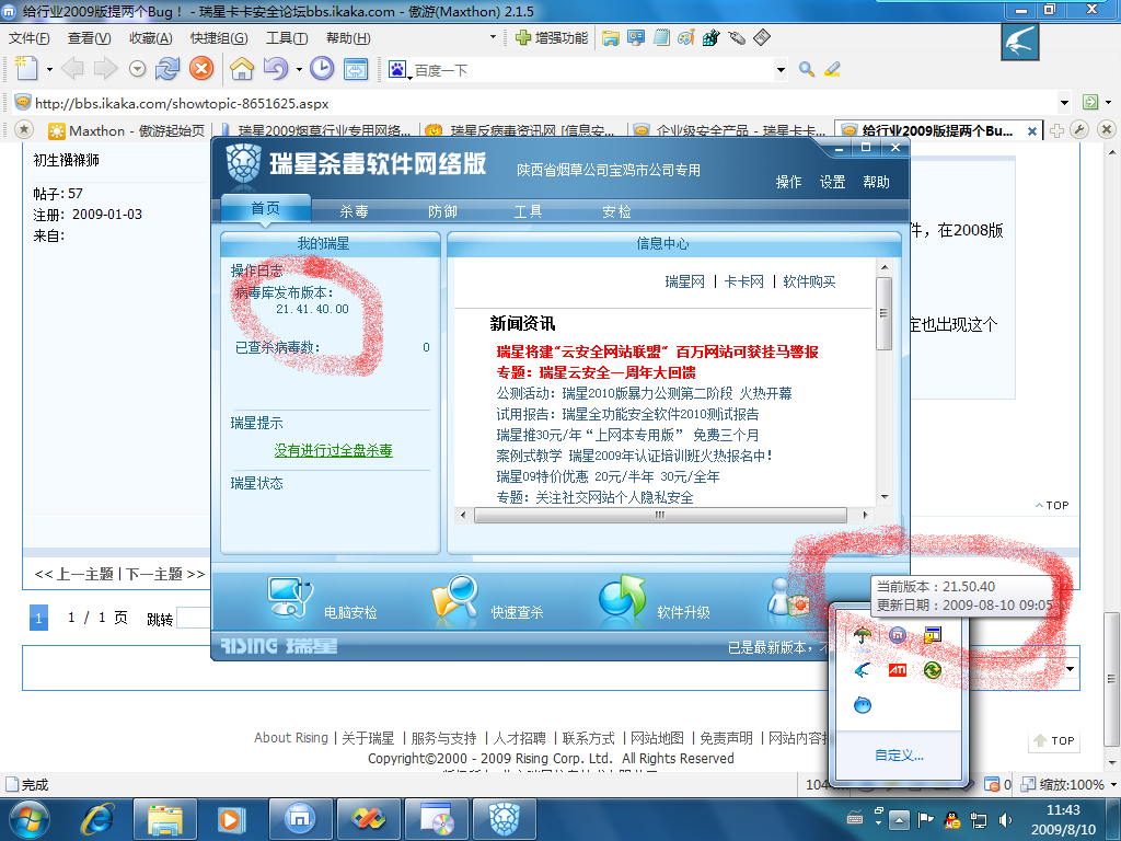 1、最让我头疼的是,2009行业版不兼容windows7的RTM版本,win7总是提示找不到杀毒软件,在2008版没次情况。